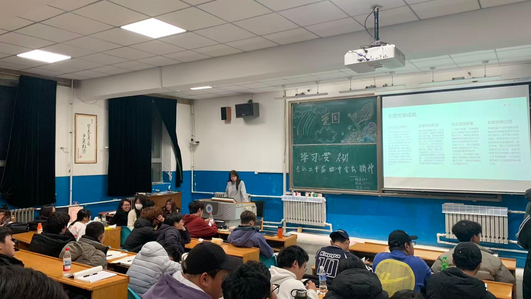 为深入学习贯彻党的二十届四中全会精神,引导广大青年学生深刻把握新时代国家治理体系和治理能力现代化的部署要求,进一步坚定制度自信、增强使命担当,市政与环境工程学院于2025年11月6日晚,组织开展了“学习贯彻党的二十届四中全会精神”主题团日活动。本次活动由学院团委组织部具体策划实施,2025级全体学生及组织部全体成员积极参与,现场学习氛围浓厚,交流热烈。